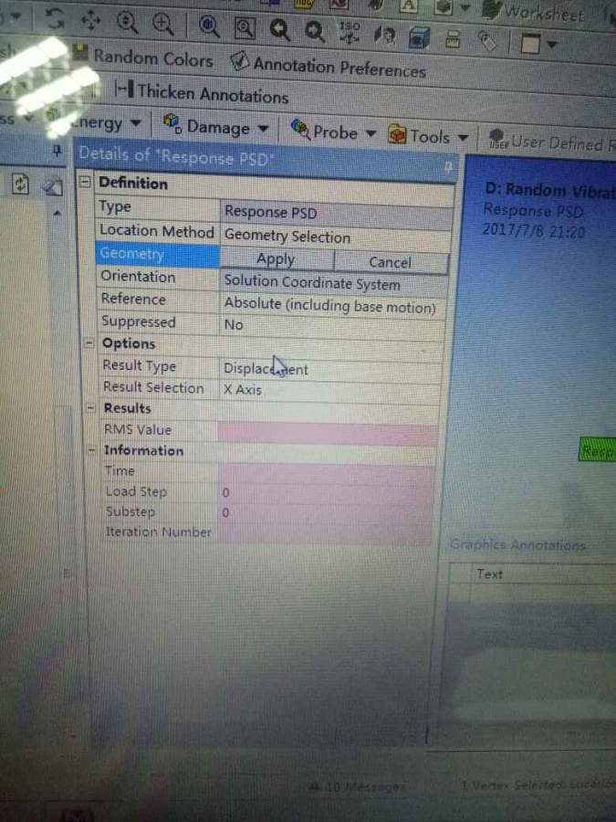求随机振动的分析过程和后处理详解,本人是初学者,在做这个仿真,过程中出现了很多问题: 1、加速度PDS输入求解后怎么找解出来的数据或图表?New chat and table? 2、New chat and table (如下图1显示),outline section 选不中怎么回事? 3、Probe - responsePSD(如下图2) geometry的点怎么选?有规定选什么点吗 粉红色的表格参数怎么填呢? 跪求各路大神帮忙,小女子实在无奈~~~ 不知道分析过程设置有没有问题。跪求大神们帮忙 发自小木虫Android客户端 |