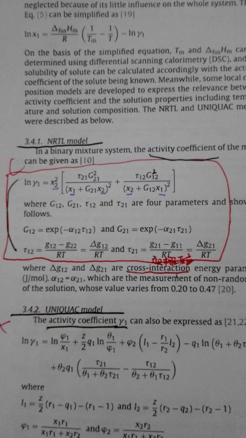 用matlab拟合数据,进行NRTL模型拟合:我编写了如下的程序,一直出错,麻烦有懂的虫友帮忙看看,怎么改错?? (一)定义.m文件。 function g4=f(beta0,x1,x2,T,R) g1=beta0(1); g2=beta0(2); g3=beta0(3); g4=beta0(4); g4=x2.*x2.*((((g(1)./(R.*T)).*(exp(-g(3).*g(1)./(R.*T))).^2)./((x1+(exp(-g(3).*g(1)./(R.*T))).*x2).^2))+(((g(2)./(R.*T)).*(exp(-g(3).*g(2)./(R.*T))).^2)./((x2+(exp(-g(3).*g(2)./(R.*T))).*x1).^2))) (二)编写程序。 x1=[0.01525 0.02059 0.02685 0.03417 0.04221 0.04958]; x2=[0.98475 0.97941 0.97315 0.96583 0.95779 0.95042]; T=[298.15 303.15 308.15 313.15 318.15 323.15]; R=[8.314 8.314 8.314 8.314 8.314 8.314]; beta0=[0,0,0,0]; [g,resnorm]=lsqcurvefit(@f,beta0,x1,x2,T,R) 运行后出错: Warning: Length of lower bounds is > length(x); ignoring extra bounds. > In checkbounds at 27 In optim\private\lsqncommon at 39 In lsqcurvefit at 149 In Untitled2 at 6 Warning: Length of upper bounds is > length(x); ignoring extra bounds. > In checkbounds at 37 In optim\private\lsqncommon at 39 In lsqcurvefit at 149 In Untitled2 at 6 Exiting due to infeasibility: 4 lower bounds exceed the corresponding upper bounds. g = 0 0 0 0 resnorm = [] |