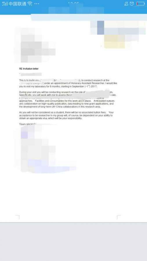 本人学校的项目去英国大学交流6个月,做研究,本人现在研二。申请访问学生签证,递交材料如下: 1.邀请信(注意是老师写的,不是学校) 2.户口本 3.在读证明 4.准假证明 5.肺结核证明 6.资金证明 被拒理由如下图一,图二是老师邀请信。 请问1.我不是办错了签证类型,应该办短期学生签证,如果这样,现在改签证类型,被拒签可能性大吗?(邀请信可以重新写) 2.现在我应该怎样做可以提高签证通过率? 不胜感激? 发自小木虫Android客户端 |