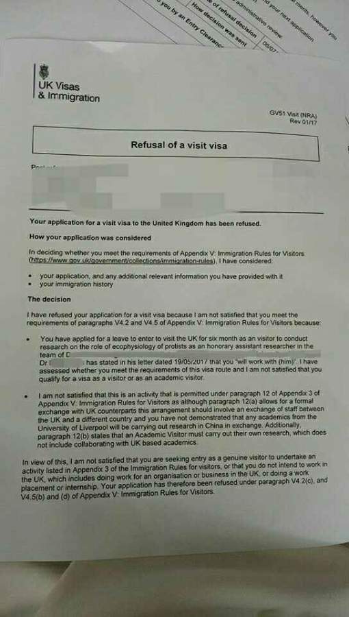 本人学校的项目去英国交流6个月,做研究,申请的访问学生签证被拒 已有2人参与