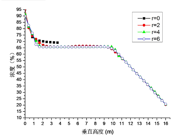 tecplot提取圆形槽体中溶液的颗粒体积分数的参数,高度固定的slice面上,不同半径平面和颗粒的体积分数(平均数)的xy曲线图