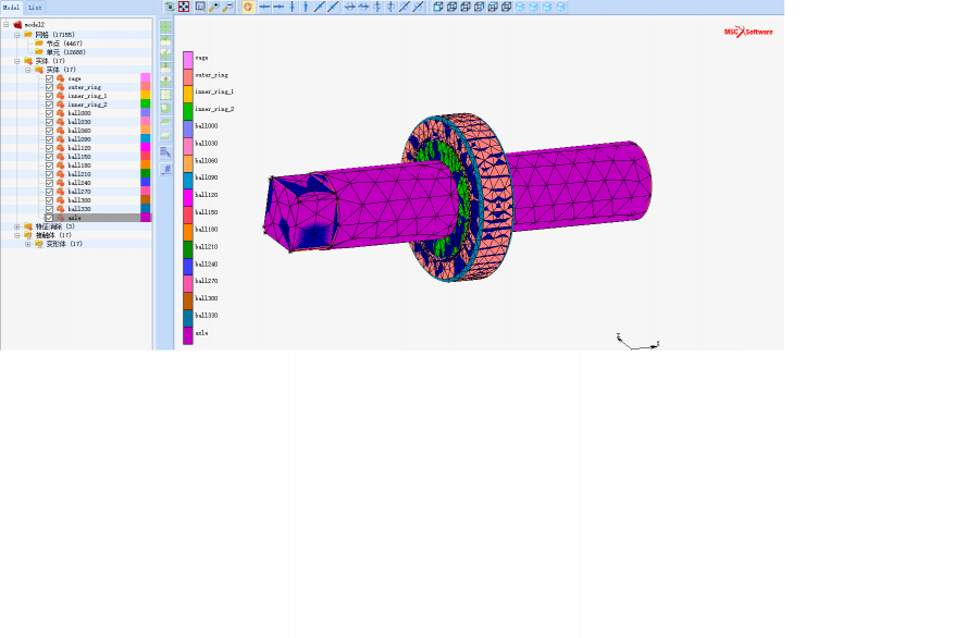 请问有哪位大神帮我看看,在marc上把轴承划好网格好,想隐藏部分看一下内部网格,但弄来弄去都搞不好,第一张图是没隐藏轴,第二章是隐藏轴,但没什么变化,网格也是整体,不知道怎么隐藏某一个部件的网格,请教一下,谢谢啦![]() ,没有金币,后面补上嘻嘻1.png 2.png |