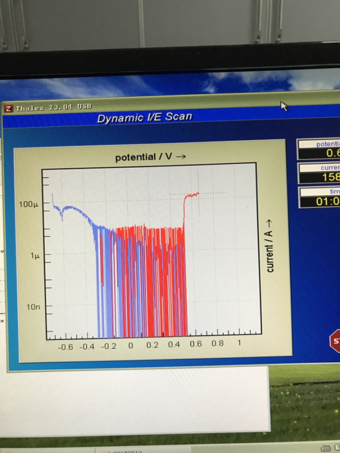 做极化曲线测试,两边还算稳定,中间明显不正常,初学者,请大家指导一下
