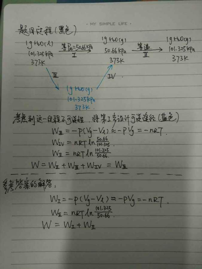 第一步的功是等温汽化为50kpa的气态水,跟发生相变是一样的,汽化热与压力无关 发自小木虫Android客户端 |