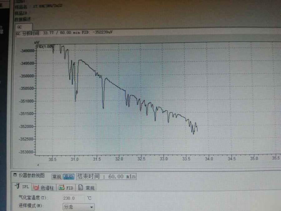 这是二甲基聚硅氧烷柱,非极性柱,可能与你之前的进料有关,可以进行这几种方法,1,更换色谱柱,查看基线情况,2,如果基线依然不稳,清洗FID检测器,超声清洗半小时以上,3,最后可以检查色谱气路。希望对你有所帮助,说的也不一定准确,互相交流。 |
