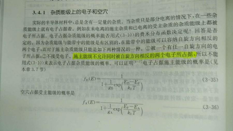 最近在自学刘恩科的《半导体物理》第七版。 其中“3.4.1节杂质能级上的电子和空穴”中说“施主能级不允许同时被自旋方向相反的两个电子所占据” 这个实在是看不懂,麻烦给讲讲原因,谢谢。 |