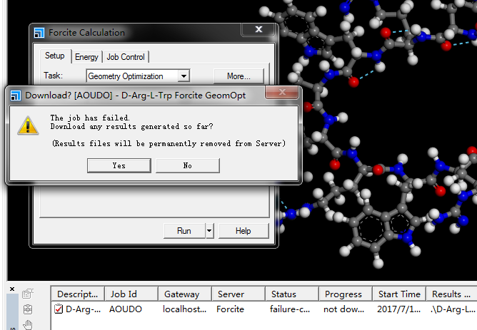 我看到文献里有人用MS来模拟,我就下载下来用了一下。 我先用其他化学绘图软件,画了个12个氨基酸的环肽,分子量在2000左右,保存成mol格式,然后用MS打开,这都是可以的。 我想做的是,想模拟下两个环肽之间的相互作用力情况比如氢键。 建好结构式模型以后,应该把它放到晶胞里对吧?(今儿刚学的,不确定)我建好了一个最简单的1P1空晶胞,想把结构式粘进去,它告诉我不是非周期性的,可我想设置的时候发现,非周期性那个选项是灰色的不能选呀。(下图二)应该怎么办啊!!!! 然后我又试着用forcite优化一下结构,也跳出来一个错误??(如图一)这怎么解决呢。 发自小木虫IOS客户端 |