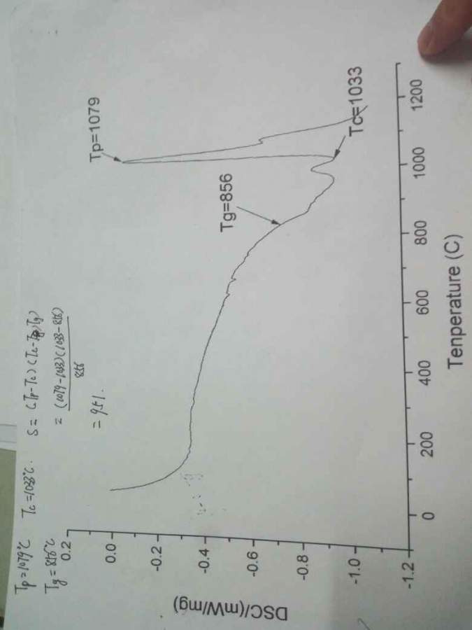 图中Tg是不是玻璃化转变温度应该说还有待考证,只能说看图线这里象有一个吸热效应,至于是不是Tg,谁也没有确定的把握和充足的证据,也有可能只是基线漂移,目前太多的论文为的省力或者作者人云亦云武断的说是Tg温度,其实是热分析的一个误区。 图中Tp所对应的的温度,只能说是测试过程中析晶速度最快的温度,和析晶上限温度无关,如果想得到析晶上限温度,那最好采用降温的方法进行DSC或者DTA分析。同样热分析也测不准析晶下限温度,因为析晶速度和温度有关,热分析还没有那么精确,所以另外一个峰不可能是析晶下限温度,左侧的峰不是形核温度就是其他晶相析出,而右侧的小峰应该是析晶峰。 |