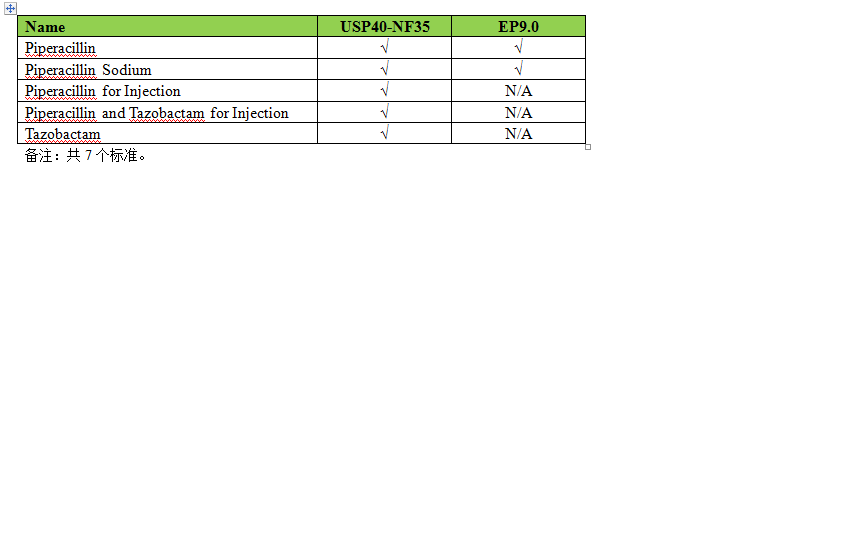 求助:哌拉西林、他唑巴坦相关标准(USP40/EP9.0)