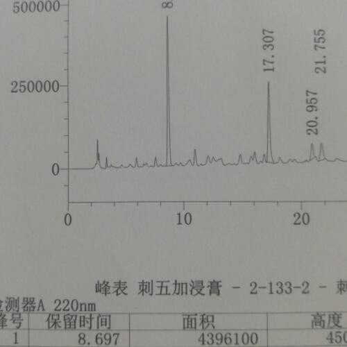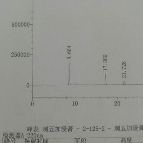 高效液相色谱图刺五加浸膏中异嗪皮啶位置