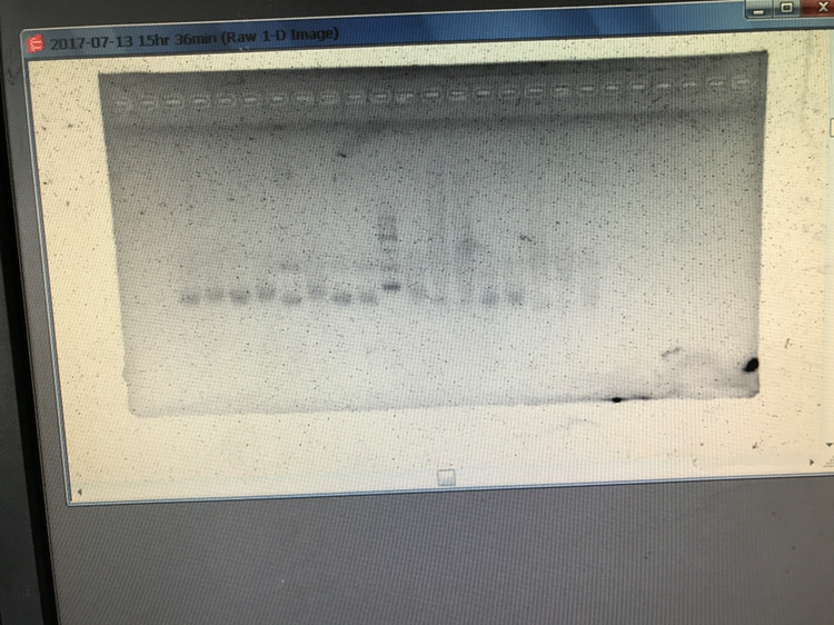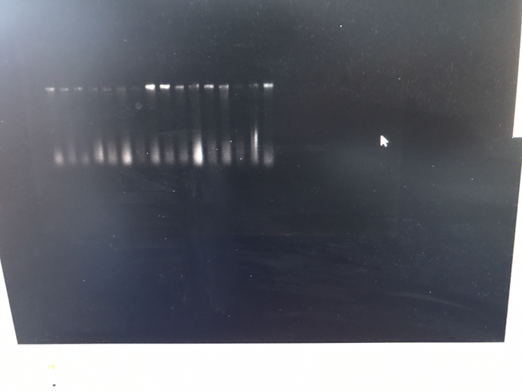 电泳PCR技术核酸技术 PCR总也扩不出条带,到底是引物问题还是模板问题?求高手指点 最近做细菌DNA的PCR,条带总也不出来,有时候连二聚体都没有,单独用引物跑电泳,结果引物没有跑出条带,(如图一),用的是1.5的胶,中间是(100bpmarker),后来又重新用2.0的胶又做了一次,还是没有条带。还做了同一个模板温度梯度的PCR(从56到68度),Tm值分别为54.9,63.6(图二),目的片段大小左边是198bp,右边是158bp。感觉左边像是二聚体,右边也不对,左边第五条带感觉像是目的片段。PCR条件是94度预变性3分,94度变性30秒,56到68退火30秒,72度延伸一分钟。因为感觉左边第五条像一条目的片段。然后再次重新换模板验证第五条带的温度时是否为目的片段,2号和8号是可疑温度,两管是不同的模板,结果出来的图如图三,左边的条带不见了。加的体系及退火温度一致,却没有条带,泳道12号是另外一种菌目标片段大小158bp,但是目的条带很暗,左边也有些很暗的条带,不知道是什么。回来用提取的总DNA去跑电泳,结果如图四,各位大师们,有遇到同样的情况吗?求高手指点迷津,在此先谢谢大家了 发自小木虫IOS客户端 |