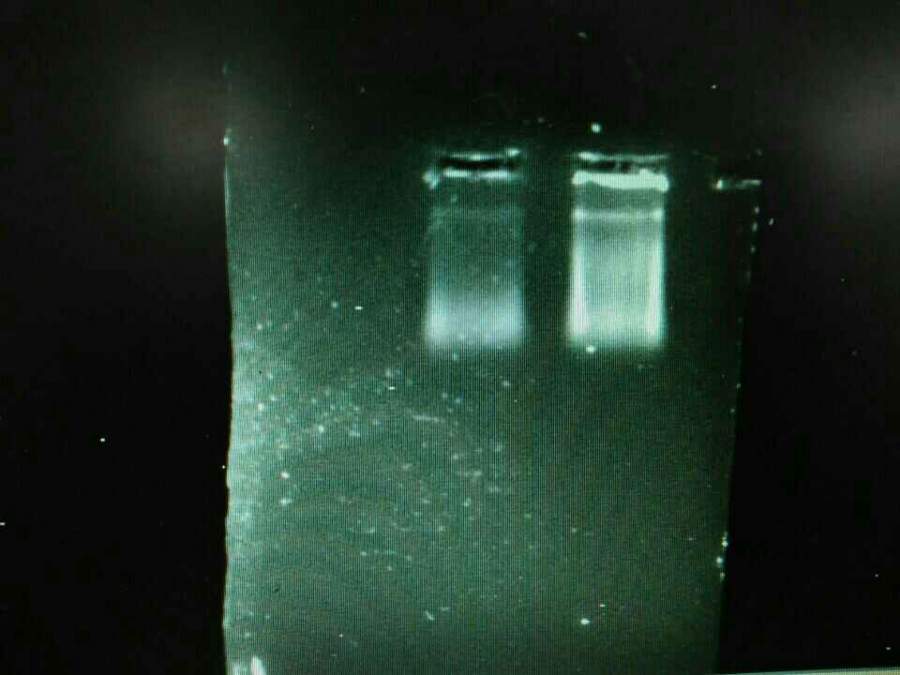 我用生工的试剂盒提了一周辣椒的总RNA,怎么也提不出来,跑出来的胶没有28s和18s的带。材料一周前取了冻在-80℃,液氮研磨也成粉末了啊!操作过程经常在换手套,不知道哪里出了问题。后面有个挥发无水乙醇的步骤,室温大概等了五六分钟,很焦灼!后面的实验没法做啊,请教各位大神,谁能给我提点建议啊。下面附一张跑胶照片 发自小木虫Android客户端 |