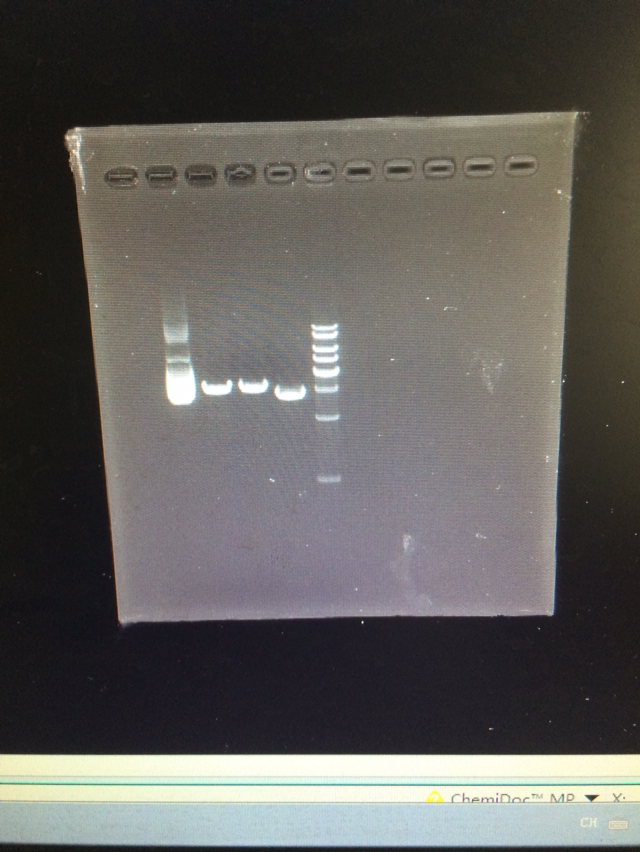 找公司合的基因用BamH1和Sal1双酶切~电泳没有目的片段~电泳图第一个是质粒~第二个是Sal1单酶切~第三个是BamH1单酶切~第三个是双酶切~目的片段1100左右~载体2700左右~一共是3800左右~~感觉切开了但是没有目的片段的条带啊 发自小木虫IOS客户端 |