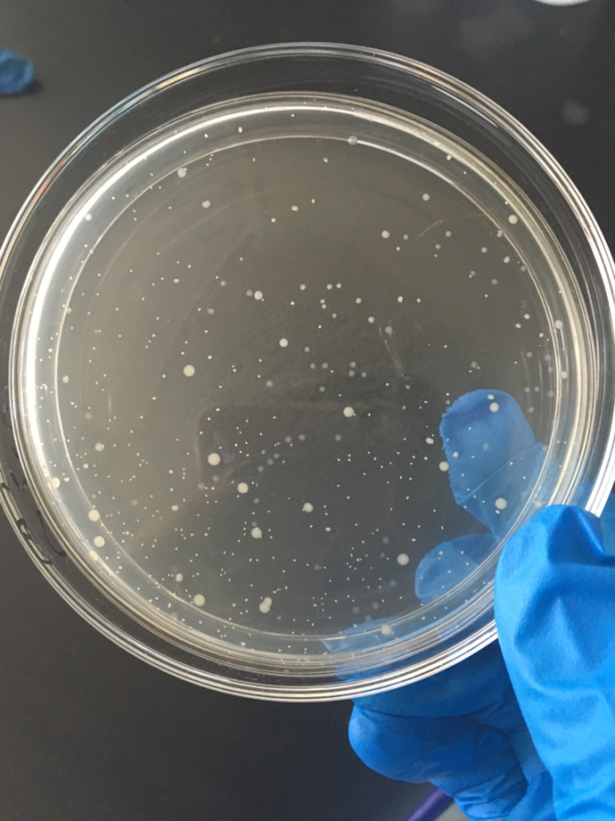用的是营养琼脂培养基 菌是大肠杆菌标准菌25922 倒平板方法是国标的倾注法 每次观察都是如图,有特别零零点点的,看着像菌的小点 图为37摄氏度培养接近40h的 发自小木虫IOS客户端 |