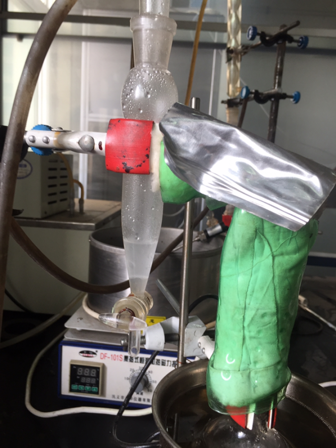 在使用分水器的时候遇到了难题,根本没有水或者蒸汽被分出来.....后来做了个水和二甲苯的空白实验,有水冷凝出来了……现在不知道下一步怎么做. 发自小木虫IOS客户端 |