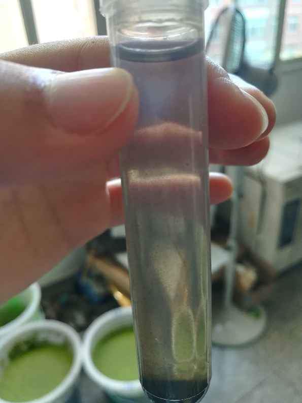 个人觉得是高锰酸钾的因素,因为你压根就没金黄色。高温阶段处理不好,还是会成那种土黄色的……。未氧化的石墨直接低速离心掉好了,建议1000-1500,离心3-5min 发自小木虫Android客户端 |