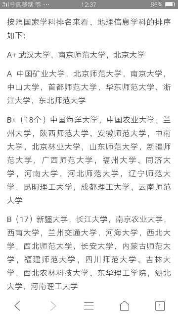 想考研考地理信息系统专业,搜学校排行时有下面两种,前面是地图学与地理信息系统的排名,后面是说地理信息系统的排名,我该根据哪个排名来选学校。还有说实话长安大学的地信怎么样,它居然不考数学,是不是地信不考数学就没什么作用了? 发自小木虫Android客户端 |