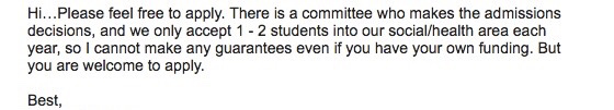 这个就是不是那么positive的回复 不过一般像美国澳洲 supervisor都不可能有录取决定权 即使对方对你再满意经过面试后 他们也不能保证你录取 但是 外导的支持会给你的申请有很大帮助 像这种回复可能是你的条件还可以 但申请的人比较多 导师手里也有其他不错的申请者 所以只能对你这么说 发自小木虫IOS客户端 |