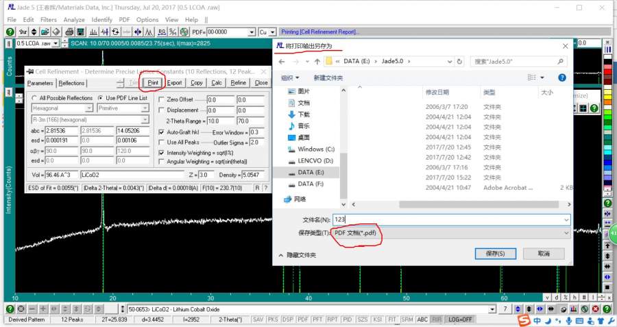 Jade分析XRD结果,print导出pdf失败