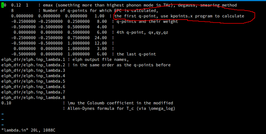 最近在使用QE计算电声耦合,在计算最后一步lambda.x算电声耦合系数的时候,lambda.in文件需要给一个q点的路径, 在Examples文件里面找到提示需要用kpoints.x生成,但是不知道它的输入文件怎么取,希望大神看到能够帮忙指点一下。 ![]() ![]() 1500538908(1).jpg |