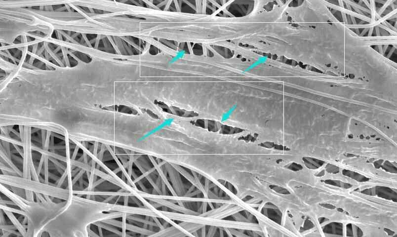 成纤细胞在支架上的10000倍电镜图。我不清楚是胞体还是细胞分泌物。 发自小木虫Android客户端 |