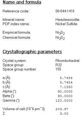 求Ni3S2(Hazelwoodite)的晶体结构参数,重点是原子坐标参数 已有1人参与