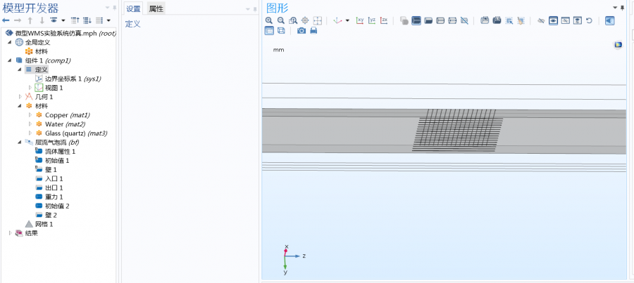 在阅读文献中发现有使用comsol模拟金属网格传感器的案例,所以也想要尝试一下。把流道的几何模型还有电极的模型已经建好了,下一步应该在电极两端介入到电路当中,但无奈刚刚接触comsol,不知道要怎么弄才可以~求各路大神指点一下(图片是目前建好了的模型的截图) 未命名图片.png |