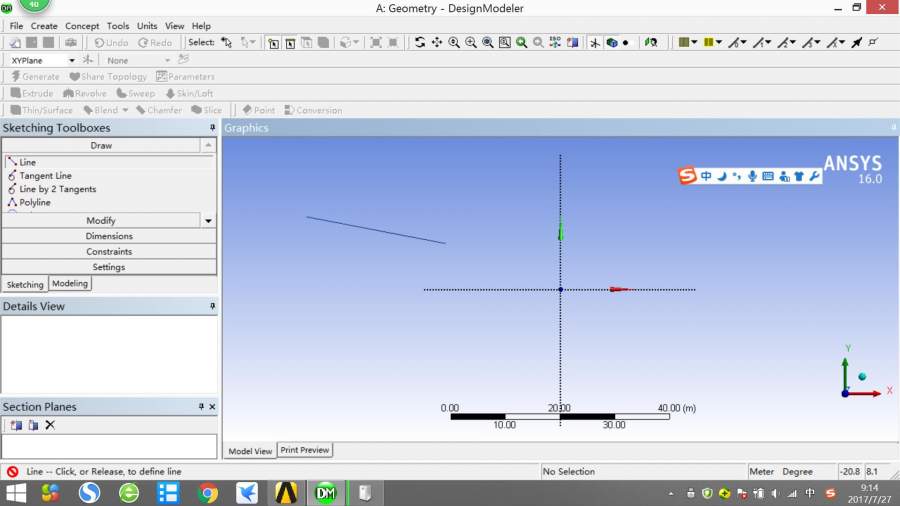用Ansys 的designmodeler画草图,左键选好直线的一个端点,将鼠标移动到另外一个端点的位置,无论点左键,右键还是中键都无法把第二个点固定下来,直线一直追着鼠标走,是为什么?怎么解决? 发自小木虫IOS客户端 |