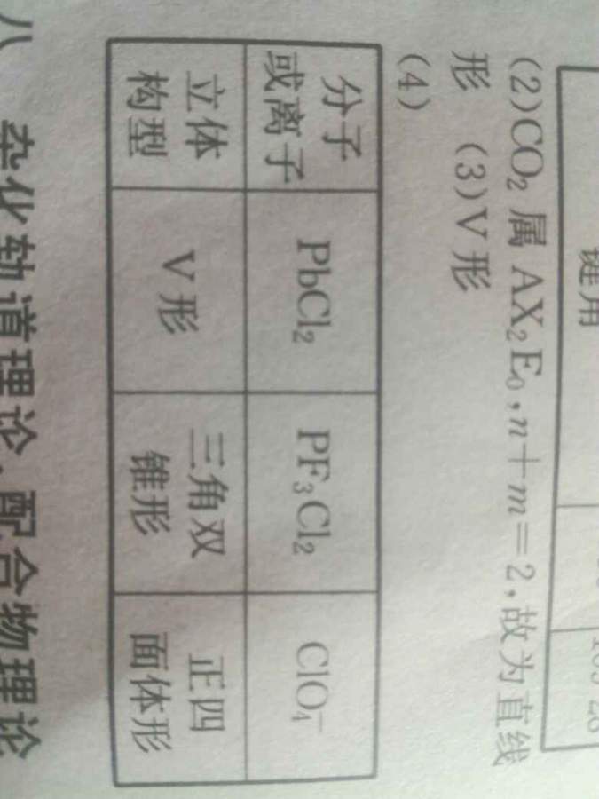 如图1原题及解释那么AB2化合物,只要A在第四主族(ⅣA)那么AB2就应该是直线型(教材中的逻辑是AB4是正面体形,AB2是直线形)。Pb在ⅣA,则PbCl4是正面体形,PbCl2是直线形。可是教材上又说PbCl2是V空间构型(如图3)为什么?这不是矛盾吗?怎么判断,是教材错了吗? 发自小木虫Android客户端 |