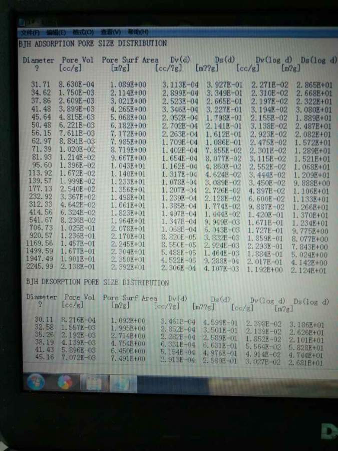 孔径分布图,横坐标是孔径,纵坐标是dV/dD,也就是图中的第四列,用第六列数据也可以。