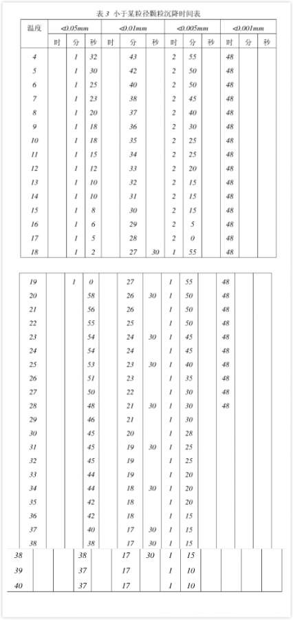 大家好,我是一个新入职的检测员。 想弄懂一个问题:关于土壤沾粒含量的测定,根据标准NY/T 1121土壤机械组成中测定沾粒(<0.002mm)时,测定开始沉降后30s、1min、2min读取比重计读数,再按规定的沉降时间继续测定4min、8/15/30min及1/2/3/4/5/8/24h等时间比重计的读数,请问测沾粒应该在哪段沉降时间开始读数,谢谢大家! 土壤沉降时间.jpg |