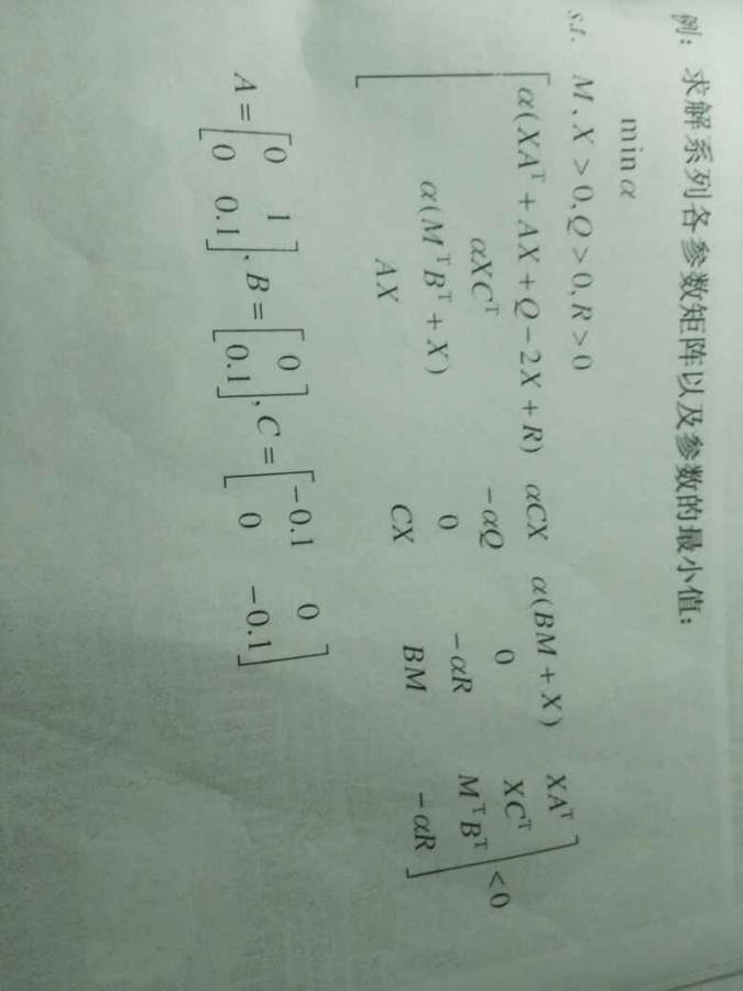 是LMI的某一项中同时有这个矩阵和矩阵的逆,还是矩阵和矩阵的逆在一个LmI中,但分布于不同的项。同一项中应用schur补引,当然也可能用某些变换使得该矩阵和矩阵的逆直接相乘消掉。 发自小木虫Android客户端 |