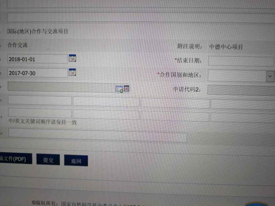 本人申请信息学部面上项目,发现可以进入国际合作与交流项目——合作交流——中德中心项目的项目申请书页面,如图所示。本人青基去年年底已结题,无在研项目。求高人指点 发自小木虫Android客户端 |