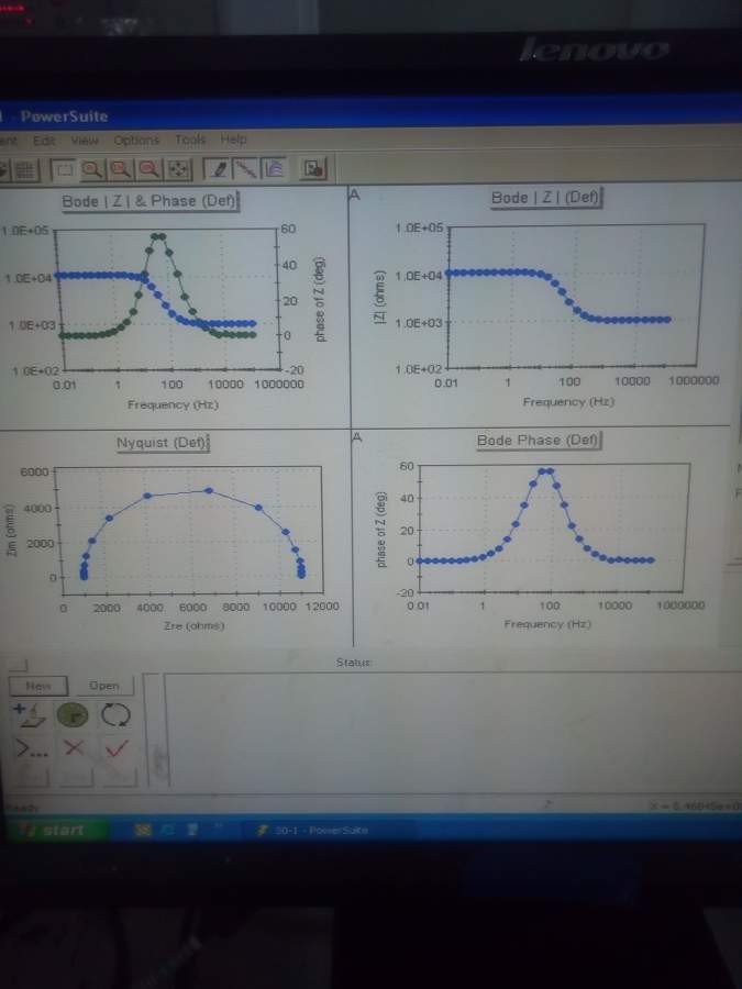 用powersuit测了半电池的交流阻抗,如图右下角所示,是一个半圆,横坐标范围为0—11000,纵坐标为0—6000,我在文献上看到别人的阻抗图都是一个半圆加一条直线,横纵坐标范围也比较小,想问下这个图是怎么拟合出来的,还是我自己测得数据有问题?求大牛指点![]() 阻抗.jpg |