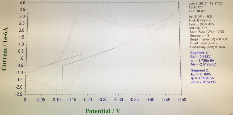 在溶液中测过氧化氢我先用cv扫,发现还原峰在-0.18v氧化峰在-0.12v然后用swv扫,还原峰在-0.12v,氧化峰在-0.18v,百思不得其解,扫描数据如下,请大神解答,是不是实验参数设的有问题。谢谢大家了。 发自小木虫IOS客户端 |