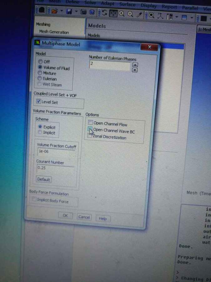 计算二维非稳态水滴脱落,默认的计算模式得到图像并不是非常的清晰。在中文帮助中看到可以选择geo reconstruct,但是我自己模型计算中并没有这个选项?请问这是为什么?geo reconstruct 是有什么前提条件吗?在画网格时交界面必须为interface?图片一张是帮助中的图,一张是我计算中的图 发自小木虫Android客户端 |
