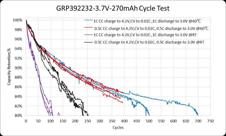 图一是最近做的一批电池循环,392232高温循环1C/0.5C都能达到500周,常温循环只有一两百周,图二是之前测的循环,603533高温1C 300周,不同型号,相同配方,电解液也为同一款高温电解液,循环跟型号关系大吗?請大神帮忙分析一下原因。 另外需要说明的是两种型号均为制袋叠片电池,392232制程中有极片叠歪的现象,但是高温循环电池也是极片叠歪,为什么循环不受影响反而更好 发自小木虫Android客户端 |