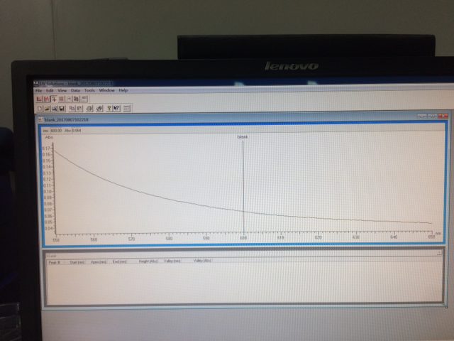 这个测的是空白水和样品,都是这种形状的曲线,以前测标样吸收峰在610,测水的吸收峰也在610