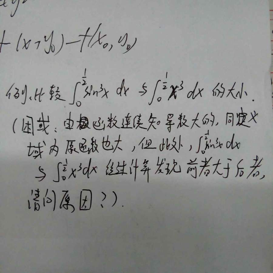 sin^3(x)<x^3,为啥0-1/2的积分相反