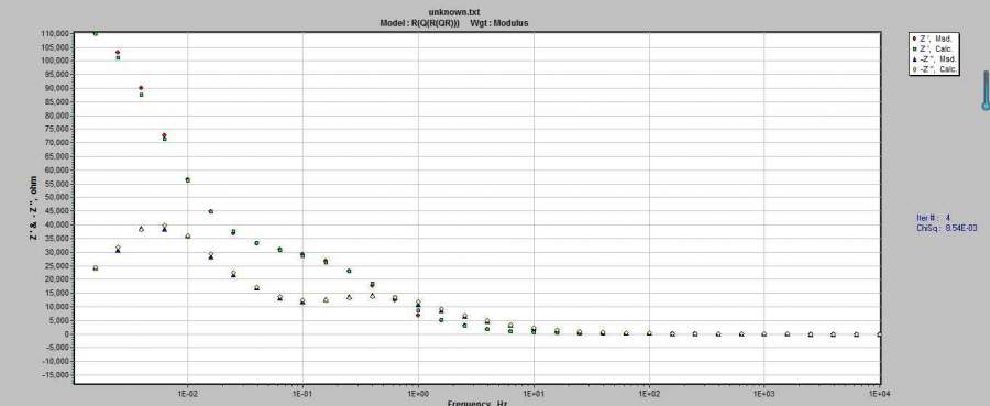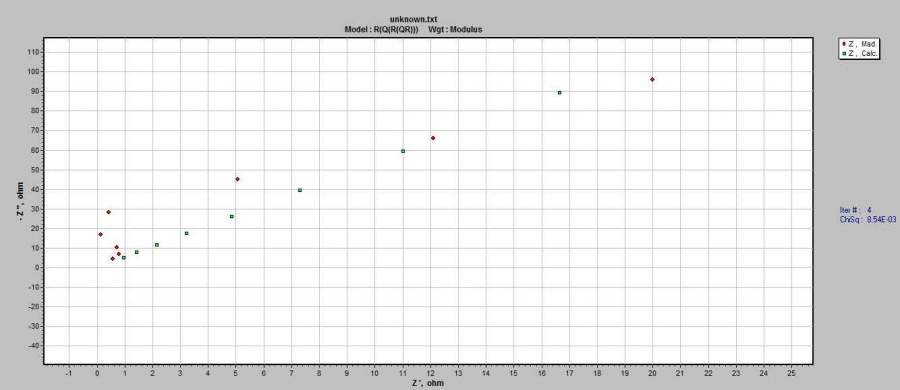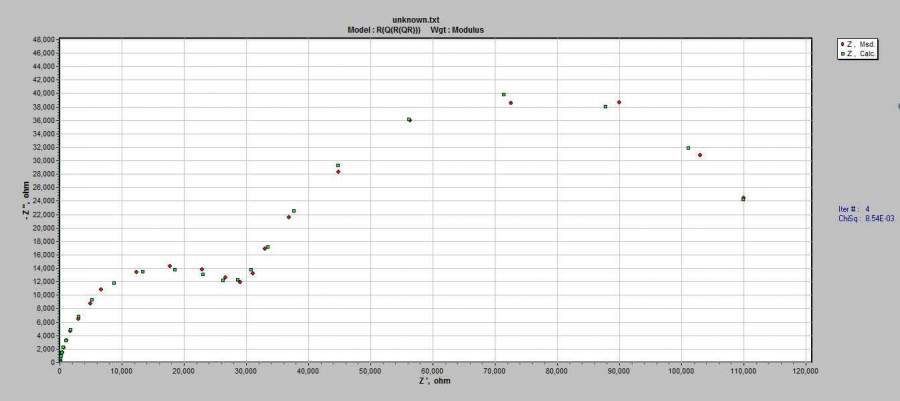 10KHZ到1KHZ这几个点在nyquist图中的形状怪异,请问您知道这是什么原因造成的的吗? 我目前只知道W扩散,考虑是否有扩散过程,这个怎么判断呢? 不胜感激! 下图是第二张528h的补充图 发自小木虫Android客户端 |
