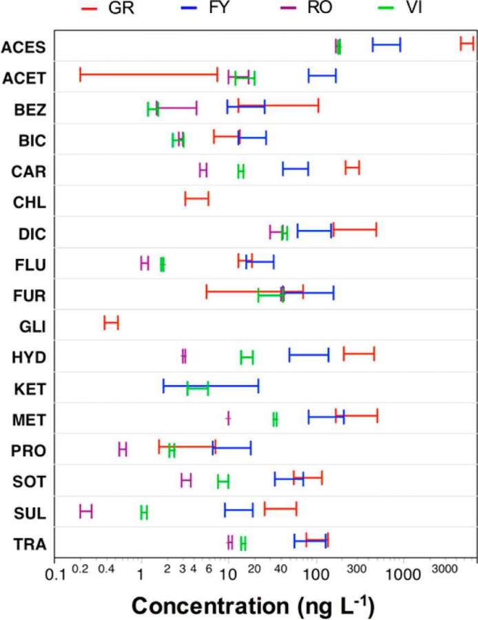 左边横坐标为化合物缩写 不同颜色横杠代表不同采样点的浓度水平 求大虾指点 发自小木虫Android客户端 |
