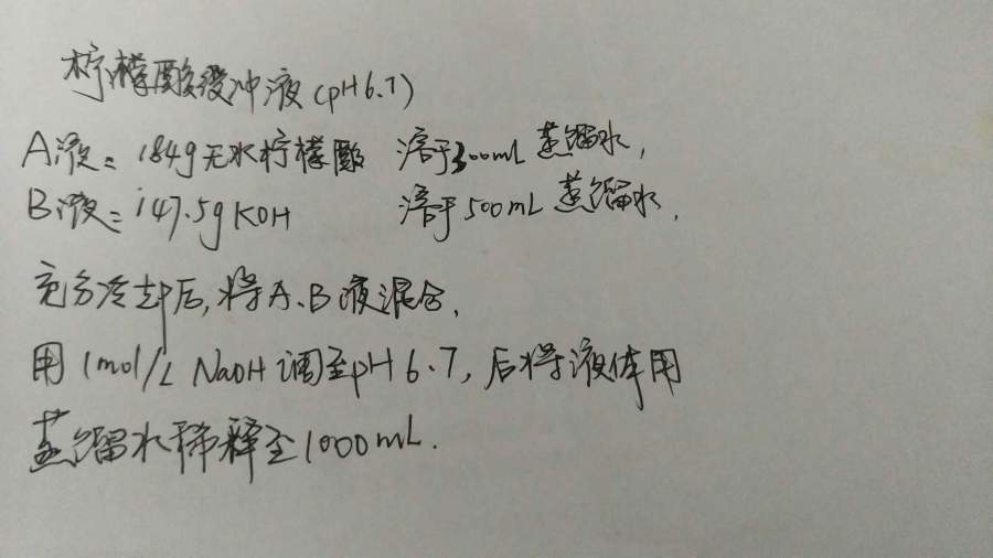 脲酶测定中,pH 6.7 的柠檬酸缓冲溶液配制问题已有1人参与