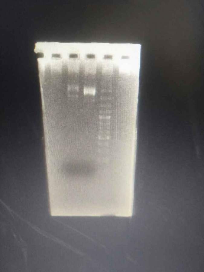 本人本科实验室的一个小娃娃,求教各位大神,不太懂啊,为啥我的质粒经酶切后这一次突然出现了两条带,以前都是没有的,而且每次酶切的质粒和未处理过的质粒跑电泳的时候条带的位置看起来都相差不多,不知道是啥原因啊~ 第一张图是这次的跑胶结果:最左边是酶切过的质粒,中间是未处理过的质粒~ 第二张图是之前的跑胶结果:中间的是酶切过的质粒~ 发自小木虫Android客户端 |