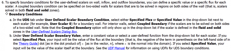 设置uds的边界条件时,可以设为 specified flux 。Fluent帮助对此是这样定义的: 完全不知道他在说什么。。。 到底是什么东西点乘n,n是面矢还是单位矢量都没说清楚。 有没有哪位大神知道这个 specified flux 的准确定义是什么? |
