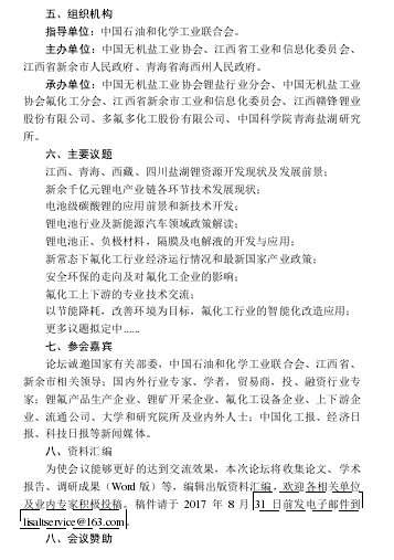 2017年中国(江西)锂氟会议 诚邀您来参与!已有1人参与