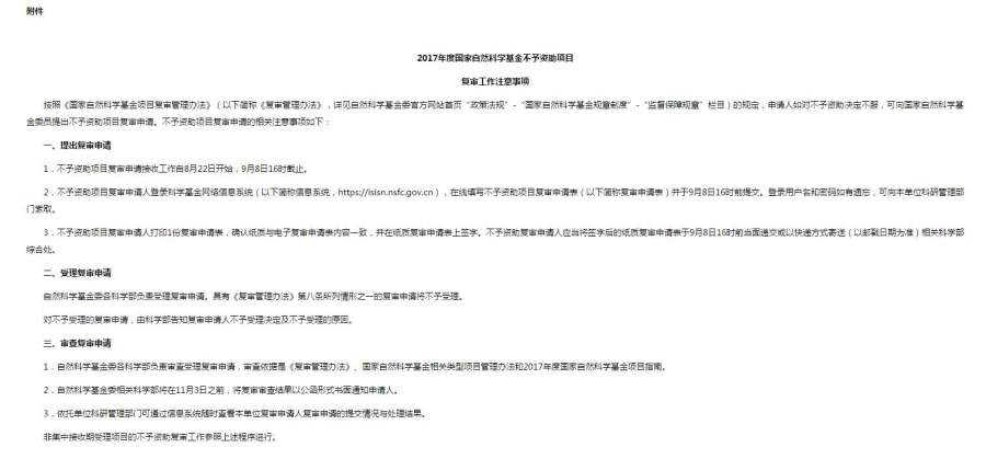 关于公布2017年度国家自然科学基金申请项目评审结果的通告