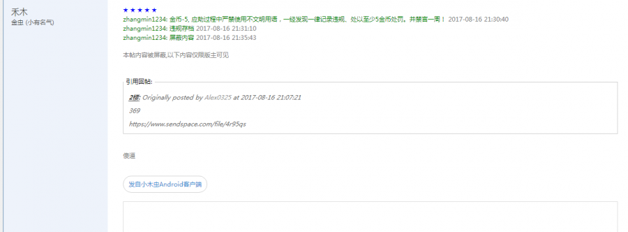 ID禾木 在文献求助版2017-8-16日回帖应助过程中采用不文明交流 证明: 根据版规https://muchong.com/t-6306288-1,文献求助版禁言一周处理! |