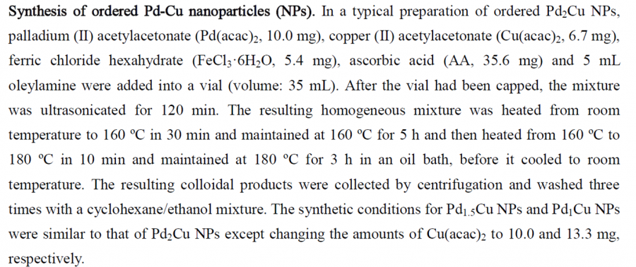 JACS上合成有序PdCu纳米颗粒制备方法的一些问题请教?