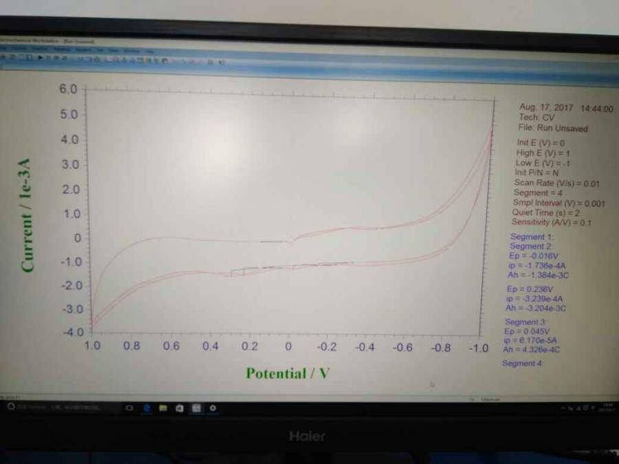 刚入电化学。最近随便找了个材料来测试。是个铁锰铜的复合氧化物。因为没有文献参考就自己摸索电压窗口。从-1扫到1,结果出现了如下的图,下面如何选择,第一次见到窗口这么宽的材料。等下上图。 发自小木虫Android客户端 |