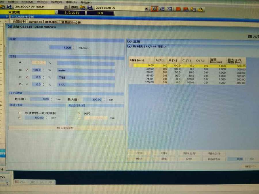 设置好的洗柱子的序列,然后第二天来看的时候发现只跑了0.1min,基本相当于没跑,不知道是怎么回事,用的是安捷伦1260,哪个大神可以解答一下,谢谢啦。紧急 发自小木虫Android客户端 |